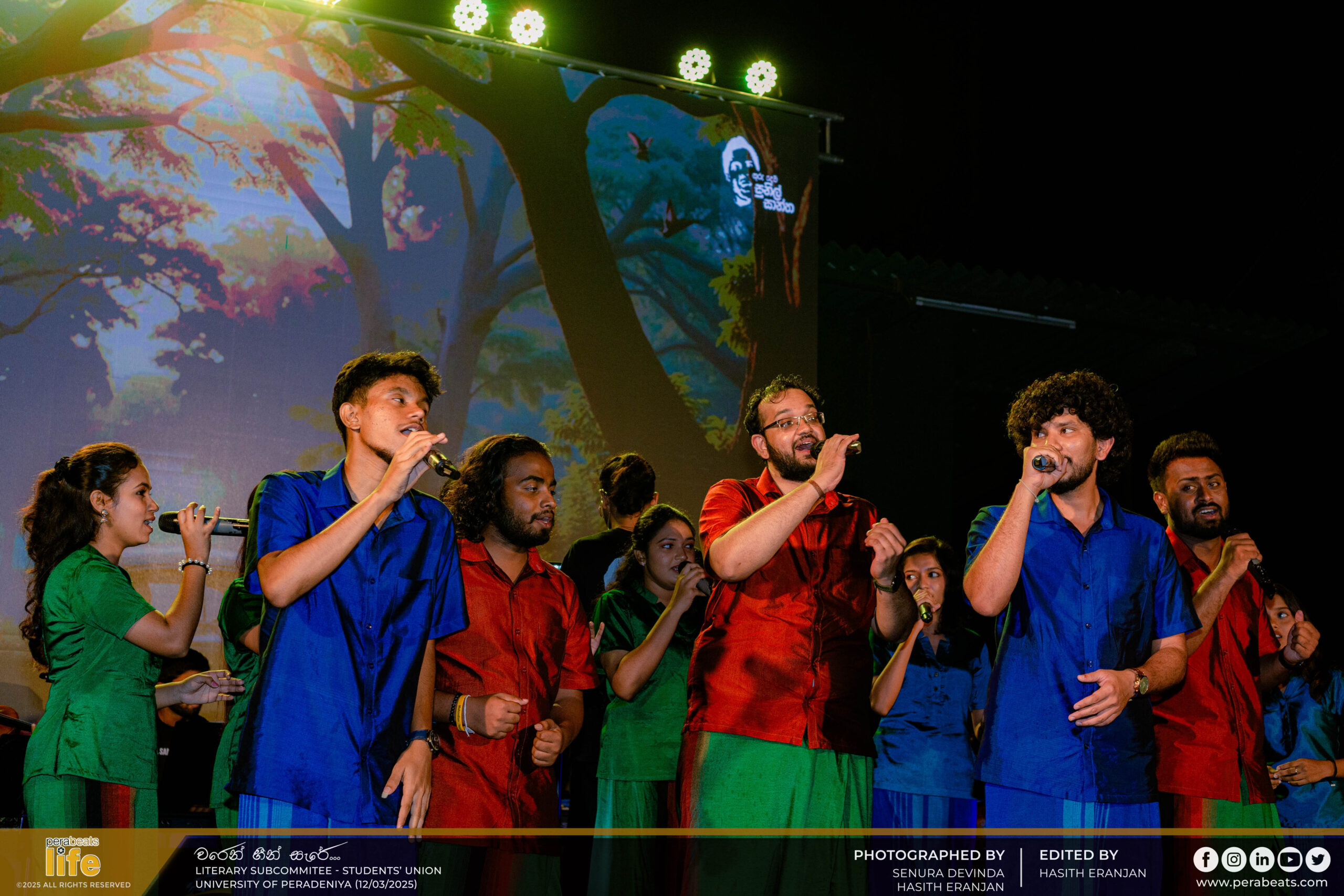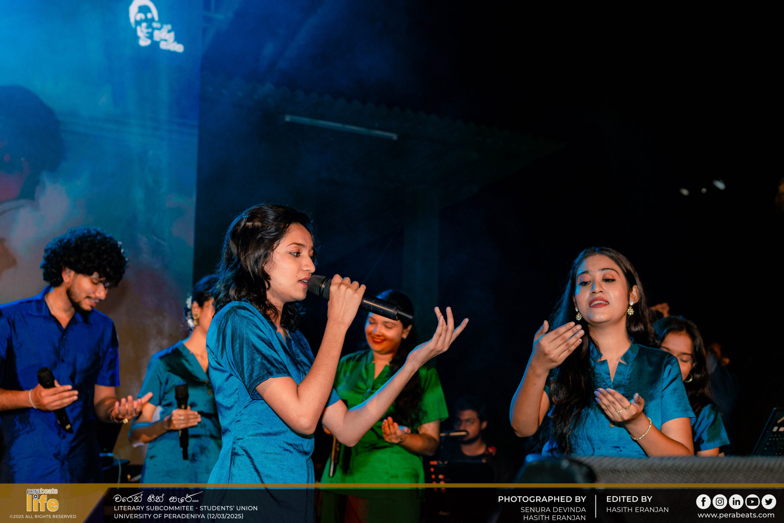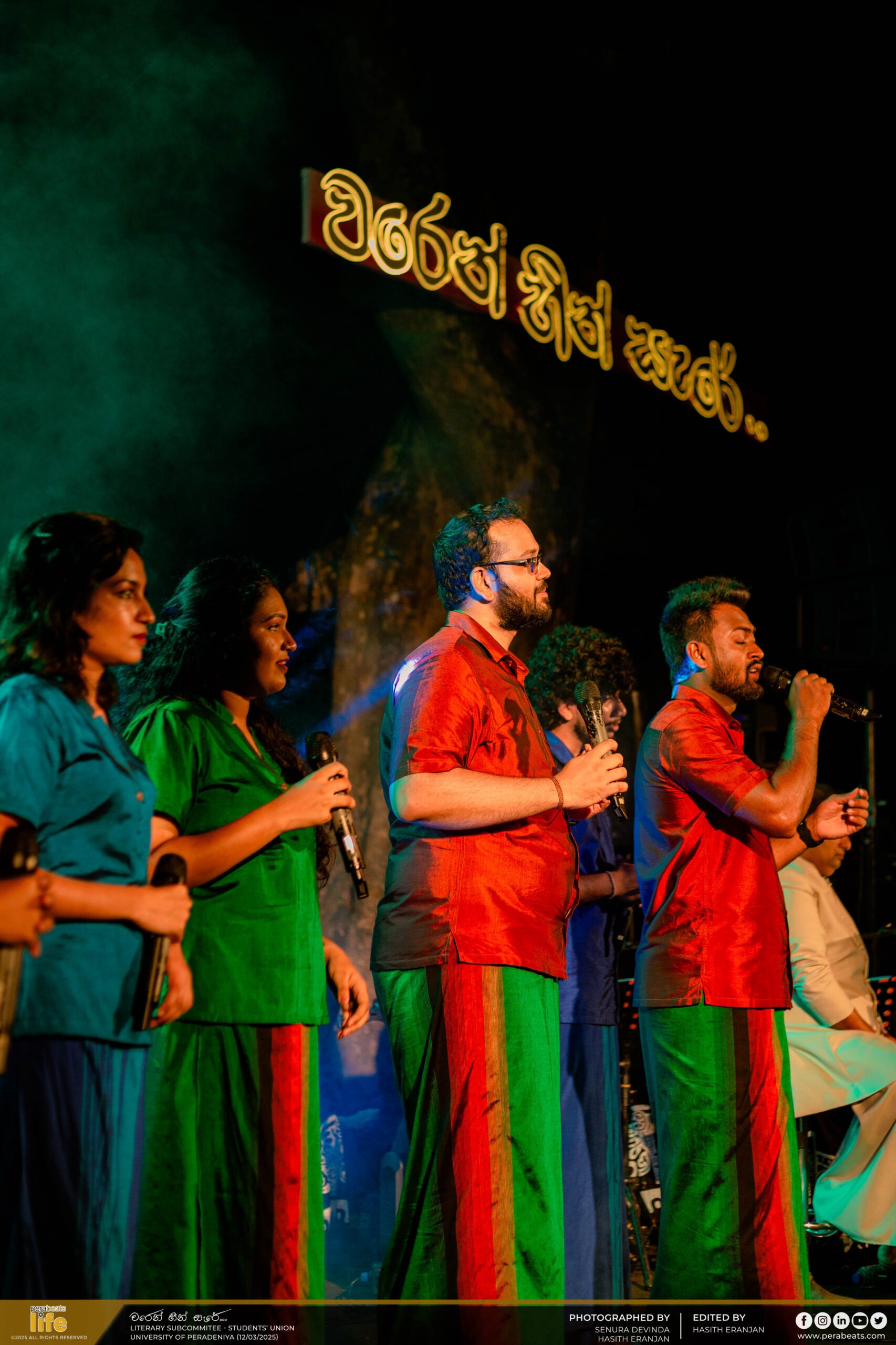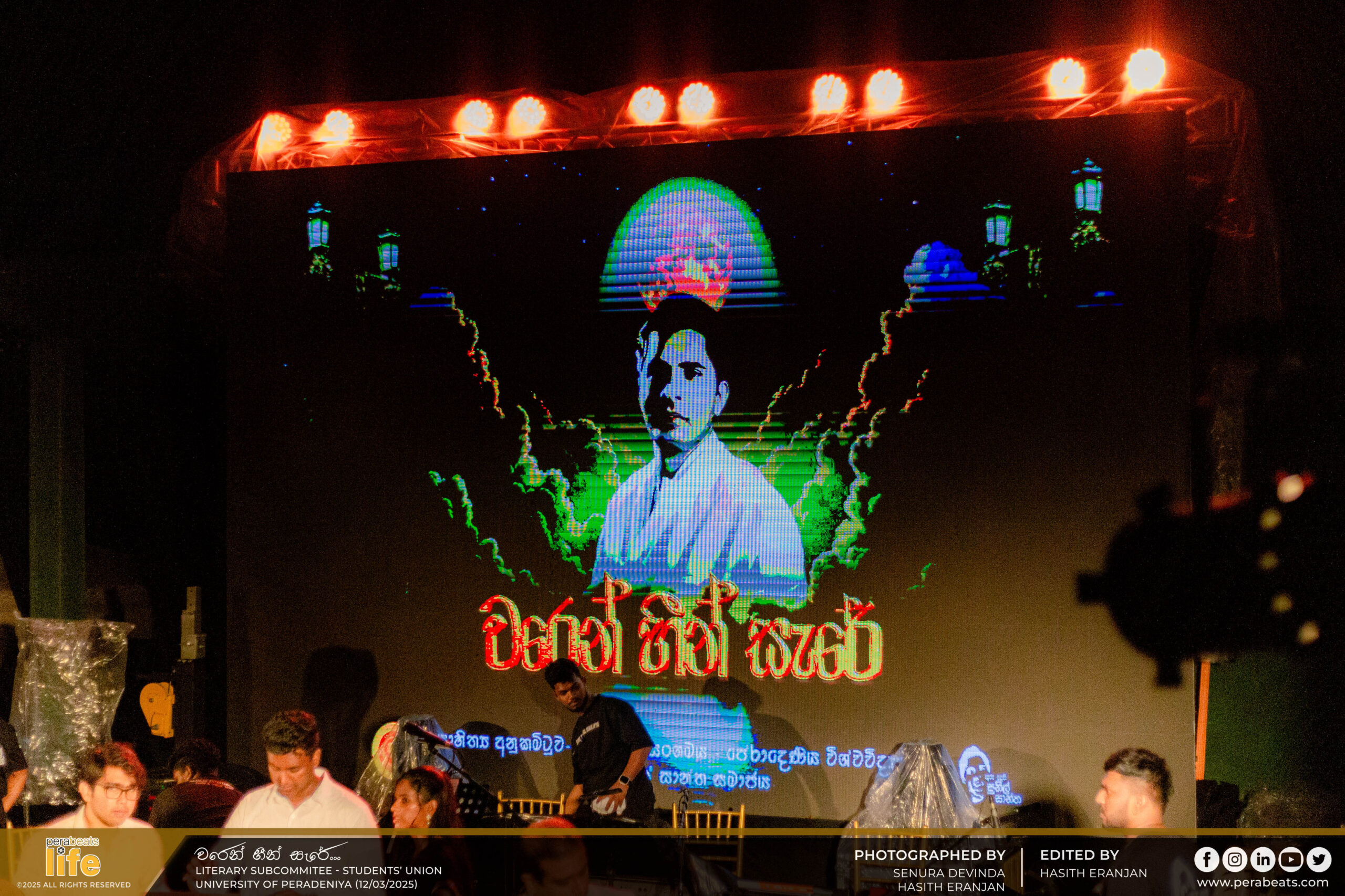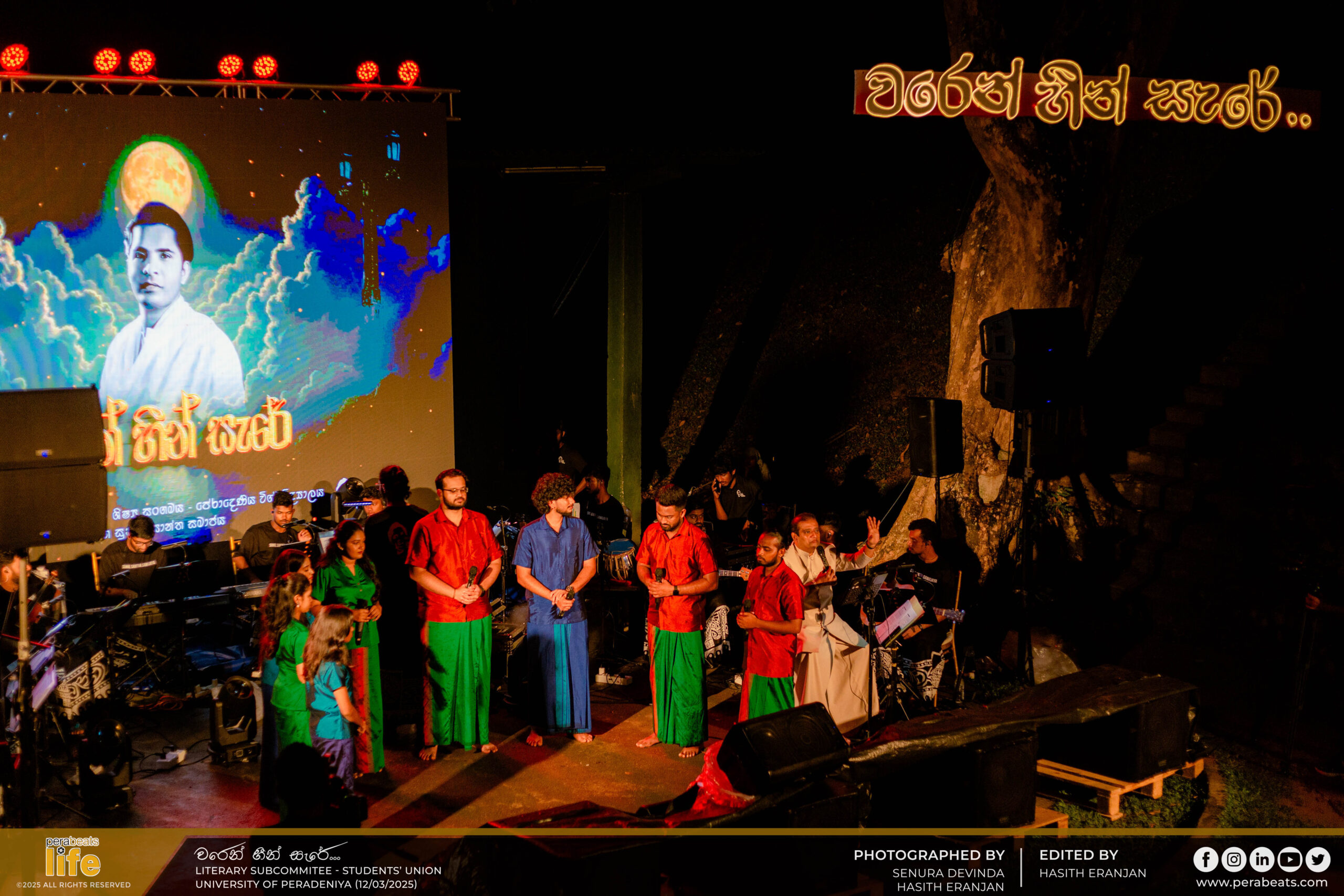 පේරාදෙණිය විශ්වවිදයාලයීය මහා ශිෂ්ය සංගමයේ සාහිත්ය අනුකමිටුව මඟින් සංවිධානය කරනු ලැබූ, සුනිල් සාන්ත සමාජය විසින් ඉදිරිපත් කරනු ලැබූ, වරෙන් හීන් සැරේ ගී මියැසිය, අතුරු සිදුරු නොවූ ප්රේක්ෂකාගාරයක් ඉදිරියේ මහාචාර්ය එදිරිවීර සරච්චන්ද්ර එළිමහන් රංග පීඨයේදී මෙලෙස දිග හැරුණු වගයි.