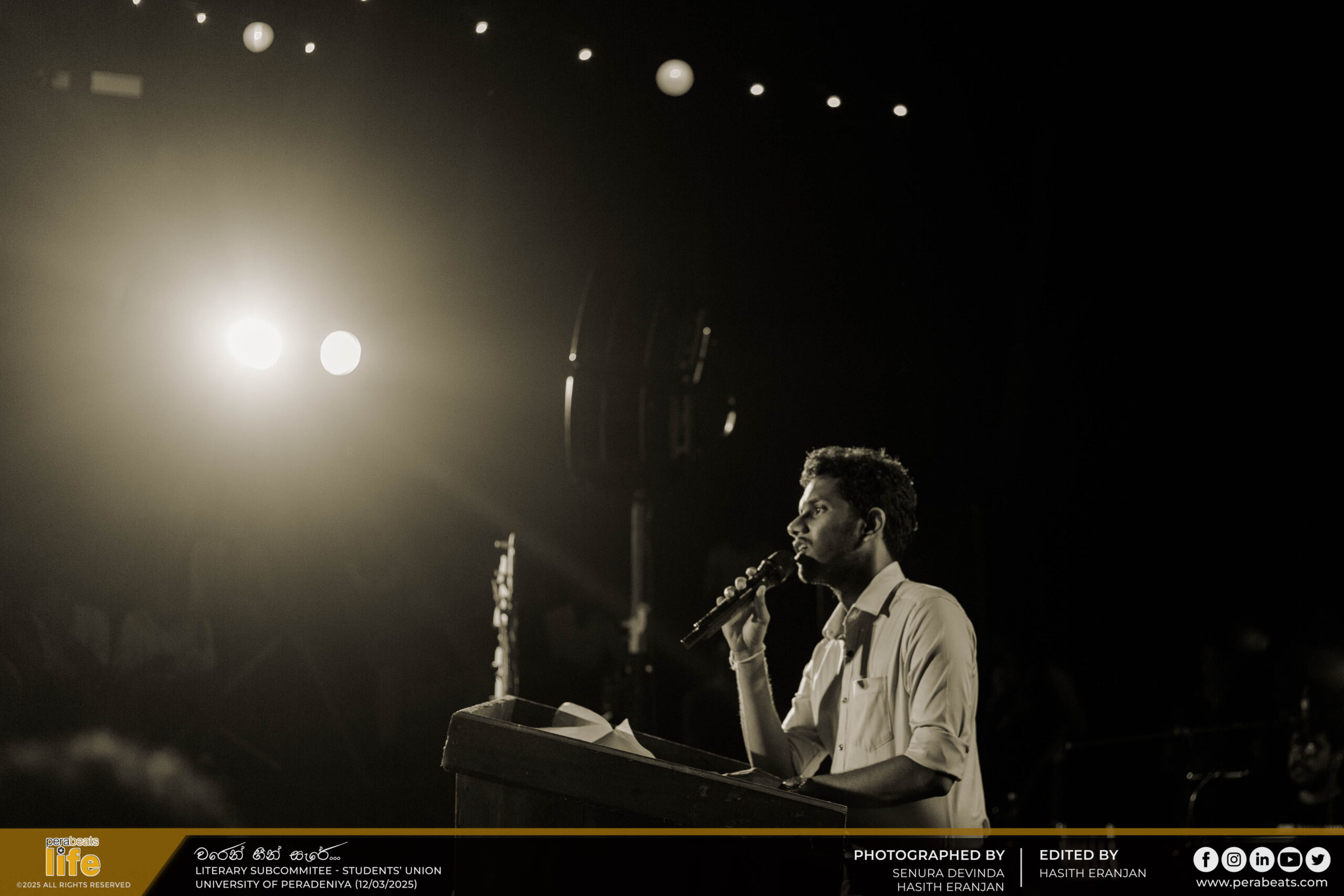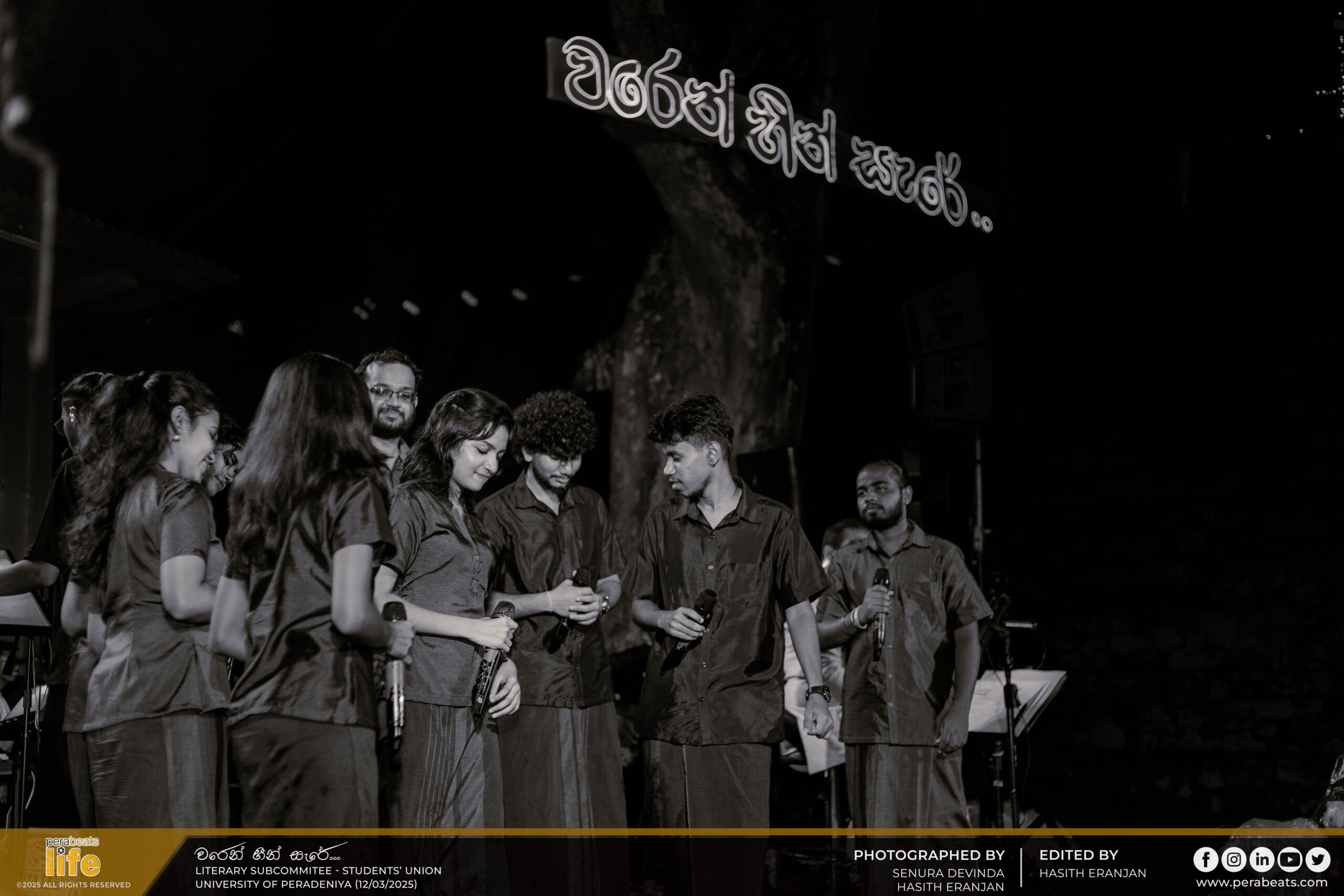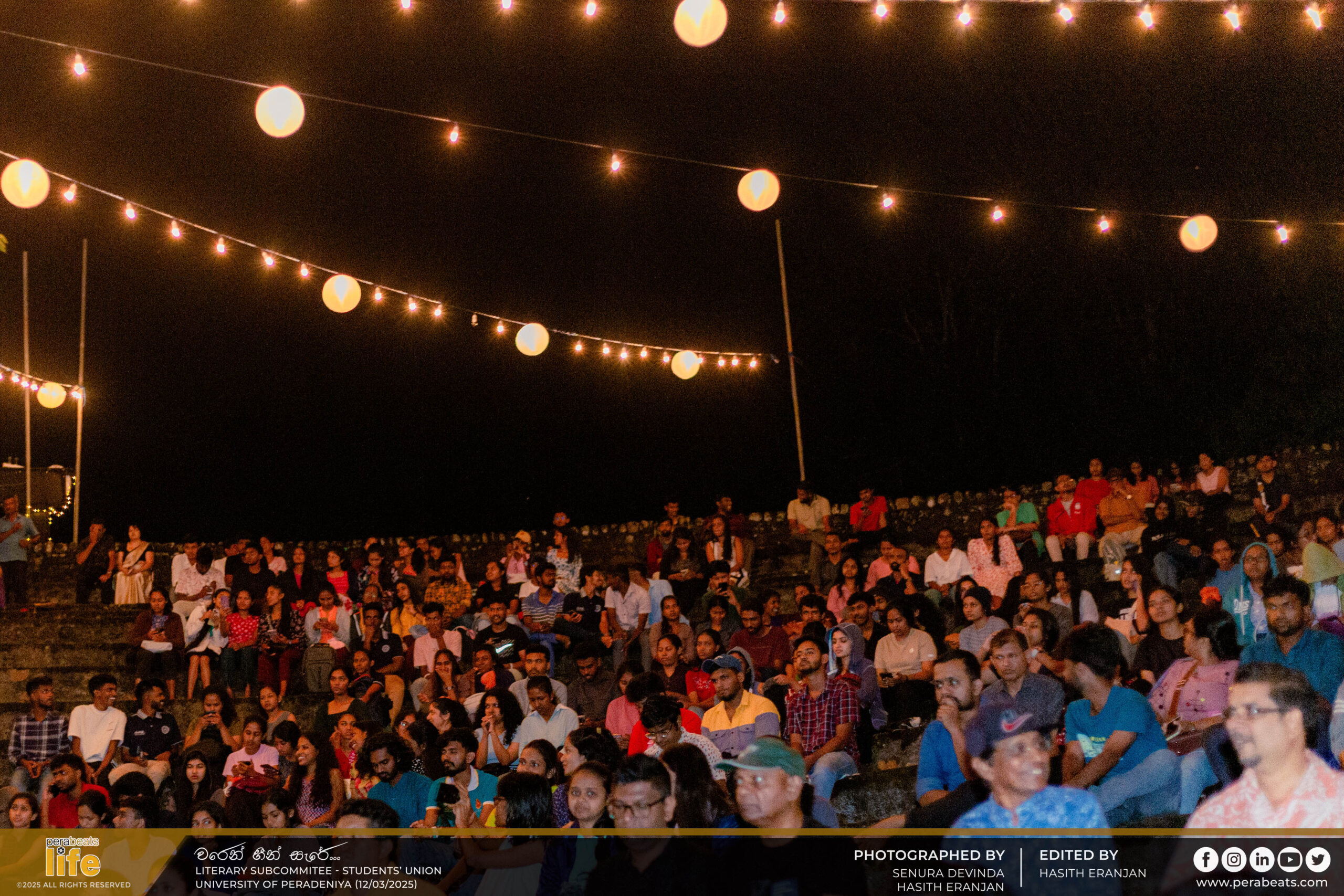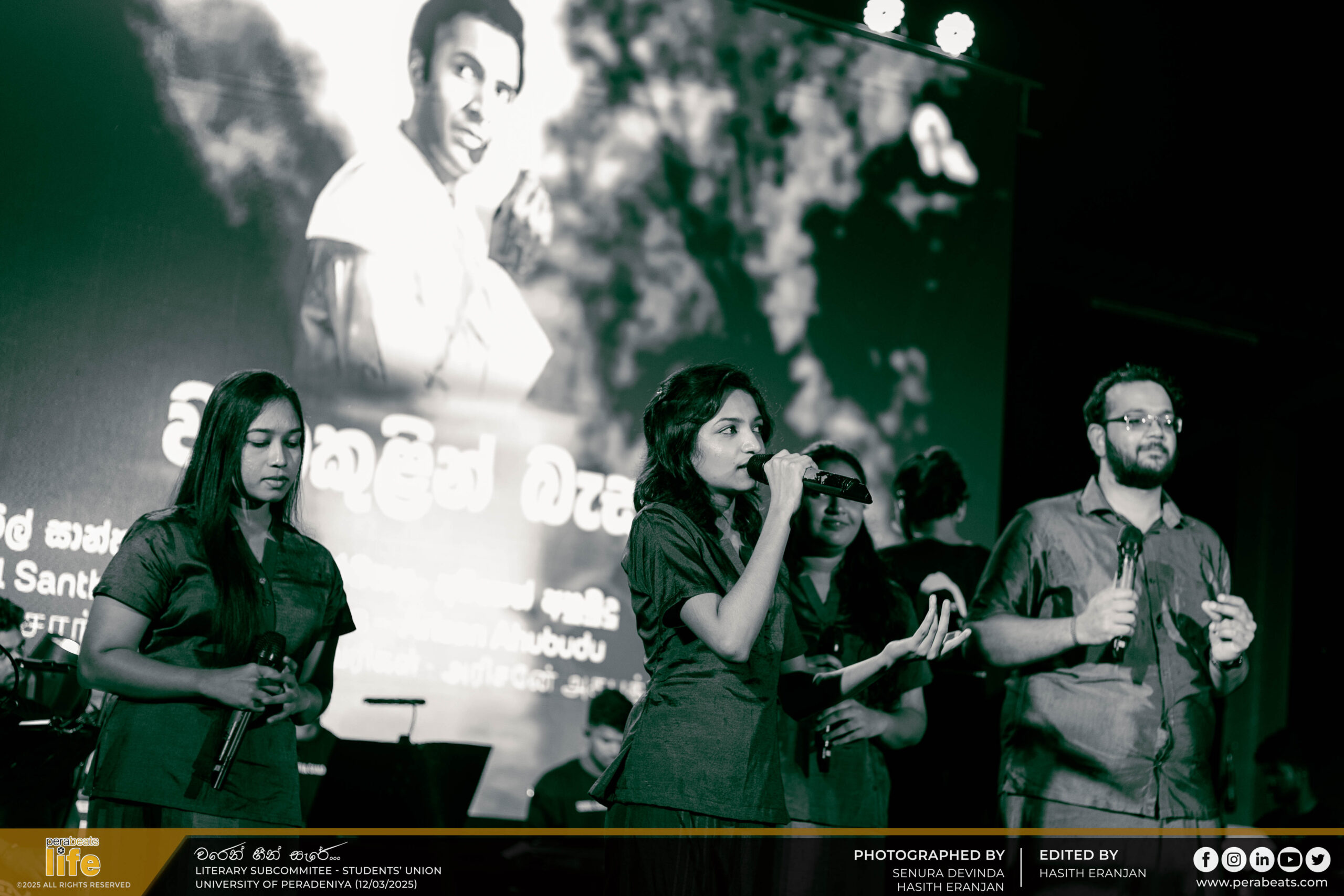 පේරාදෙණිය විශ්වවිදයාලයීය මහා ශිෂ්ය සංගමයේ සාහිත්ය අනුකමිටුව මඟින් සංවිධානය කරනු ලැබූ, සුනිල් සාන්ත සමාජය විසින් ඉදිරිපත් කරනු ලැබූ, වරෙන් හීන් සැරේ ගී මියැසිය, අතුරු සිදුරු නොවූ ප්රේක්ෂකාගාරයක් ඉදිරියේ මහාචාර්ය එදිරිවීර සරච්චන්ද්ර එළිමහන් රංග පීඨයේදී මෙලෙස දිග හැරුණු වගයි.