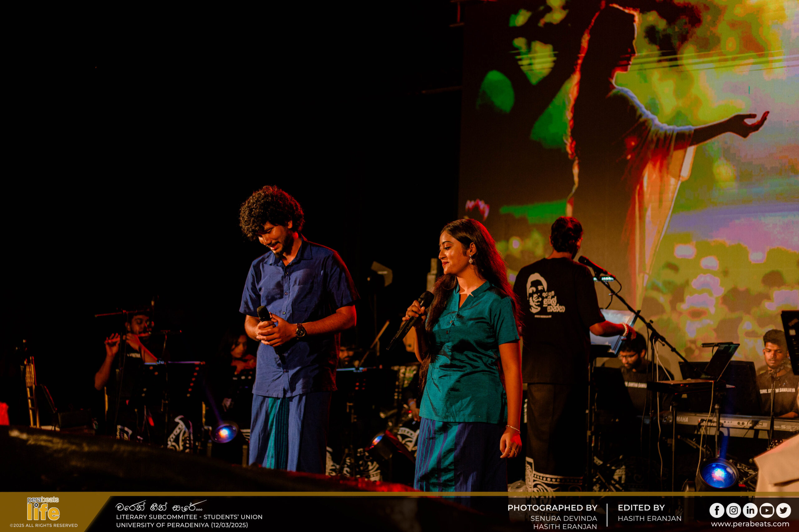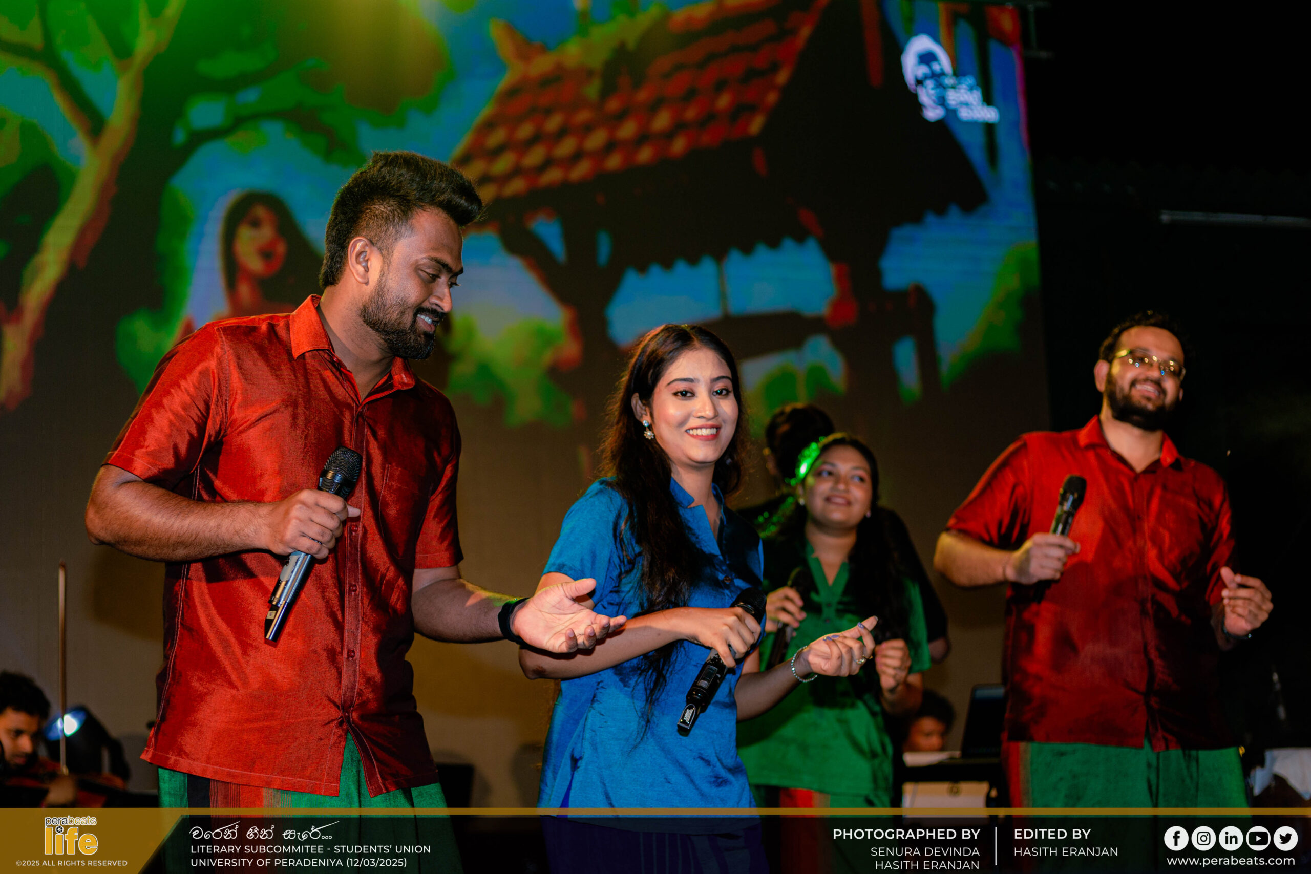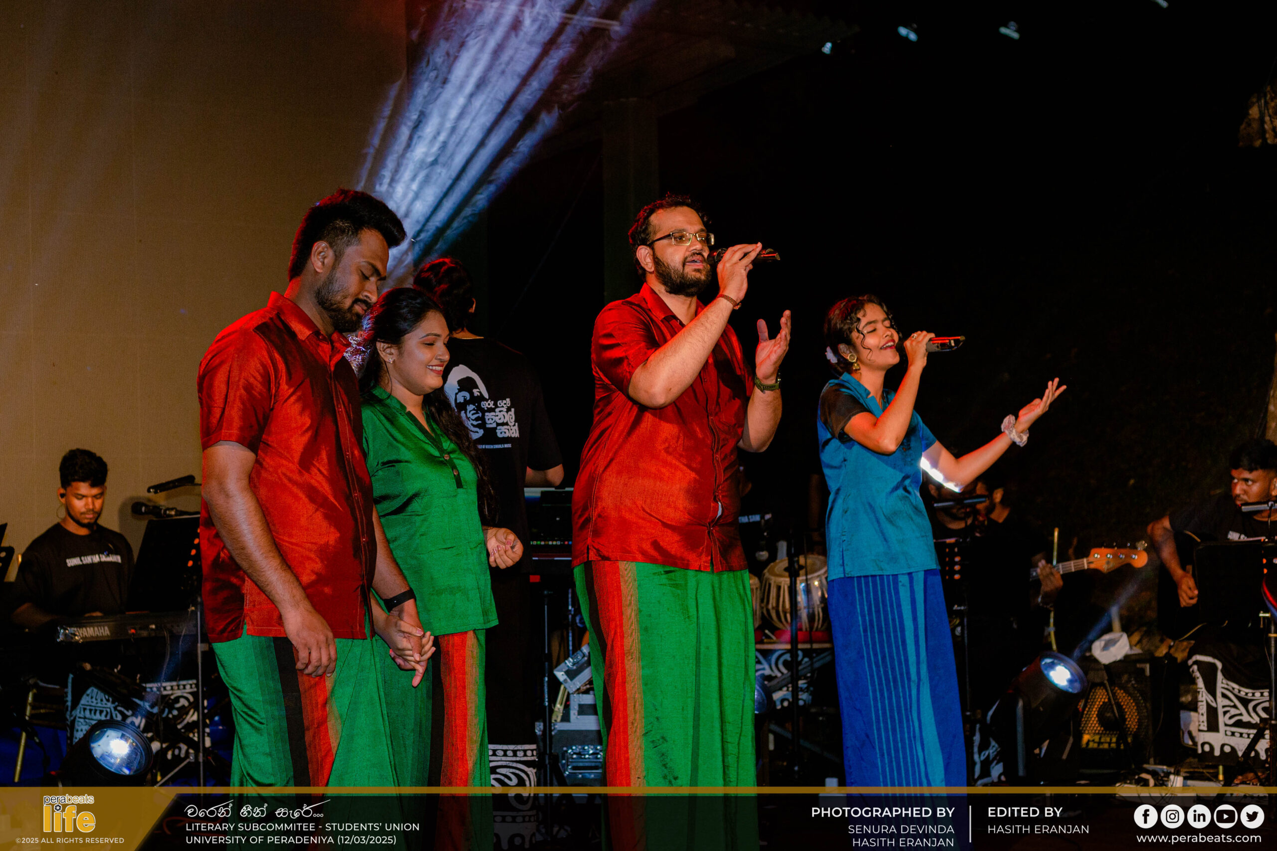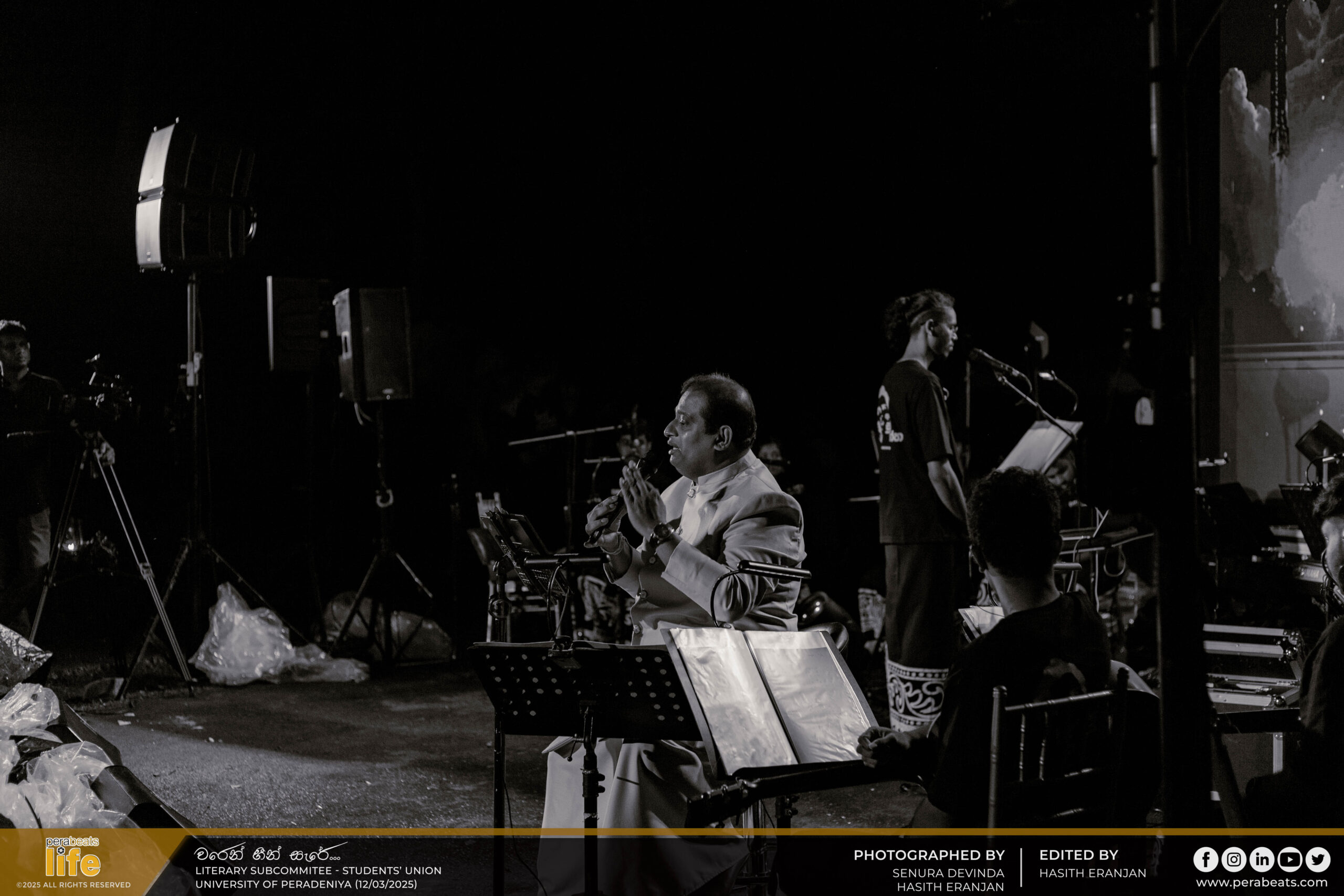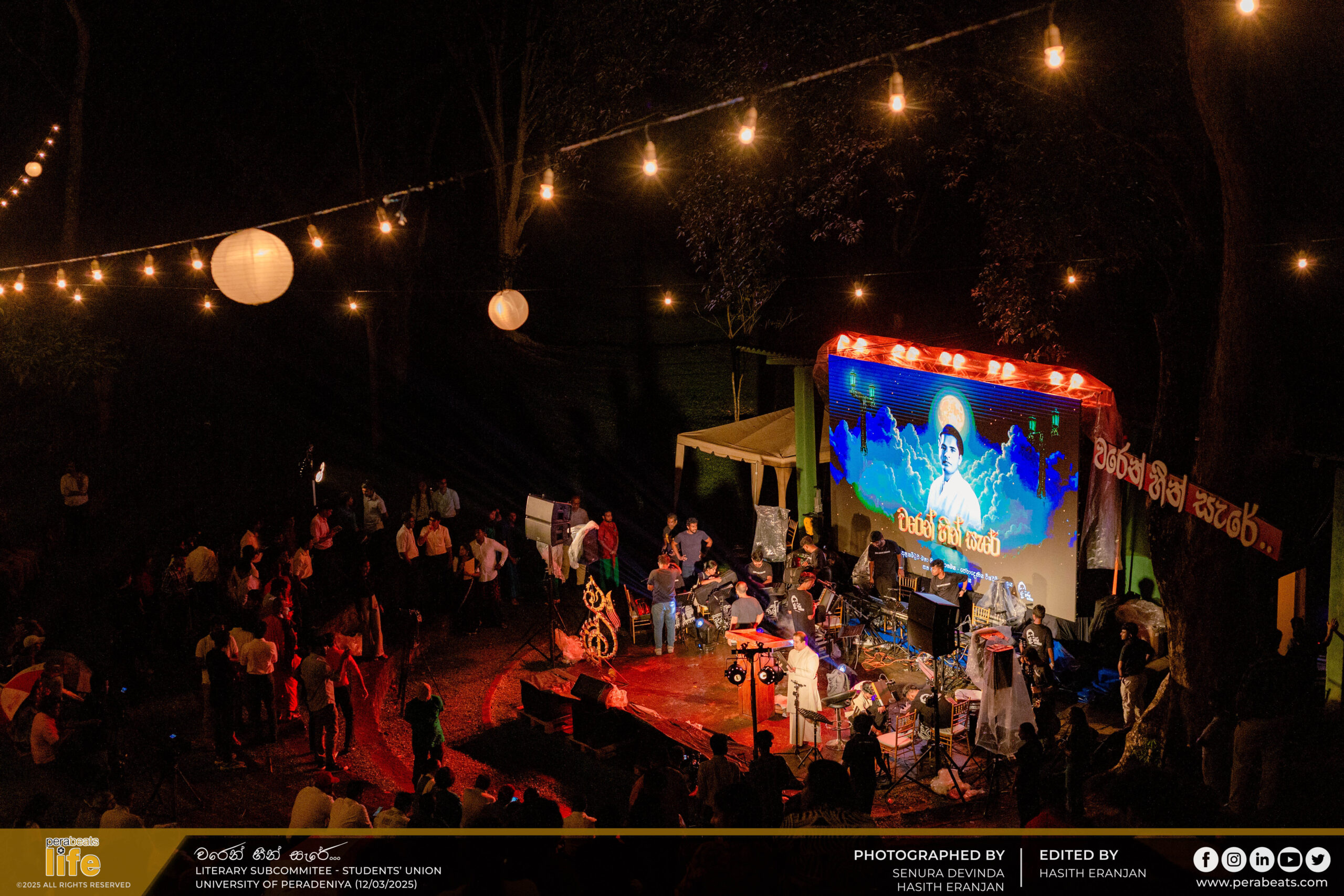 පේරාදෙණිය විශ්වවිදයාලයීය මහා ශිෂ්ය සංගමයේ සාහිත්ය අනුකමිටුව මඟින් සංවිධානය කරනු ලැබූ, සුනිල් සාන්ත සමාජය විසින් ඉදිරිපත් කරනු ලැබූ, වරෙන් හීන් සැරේ ගී මියැසිය, අතුරු සිදුරු නොවූ ප්රේක්ෂකාගාරයක් ඉදිරියේ මහාචාර්ය එදිරිවීර සරච්චන්ද්ර එළිමහන් රංග පීඨයේදී මෙලෙස දිග හැරුණු වගයි.