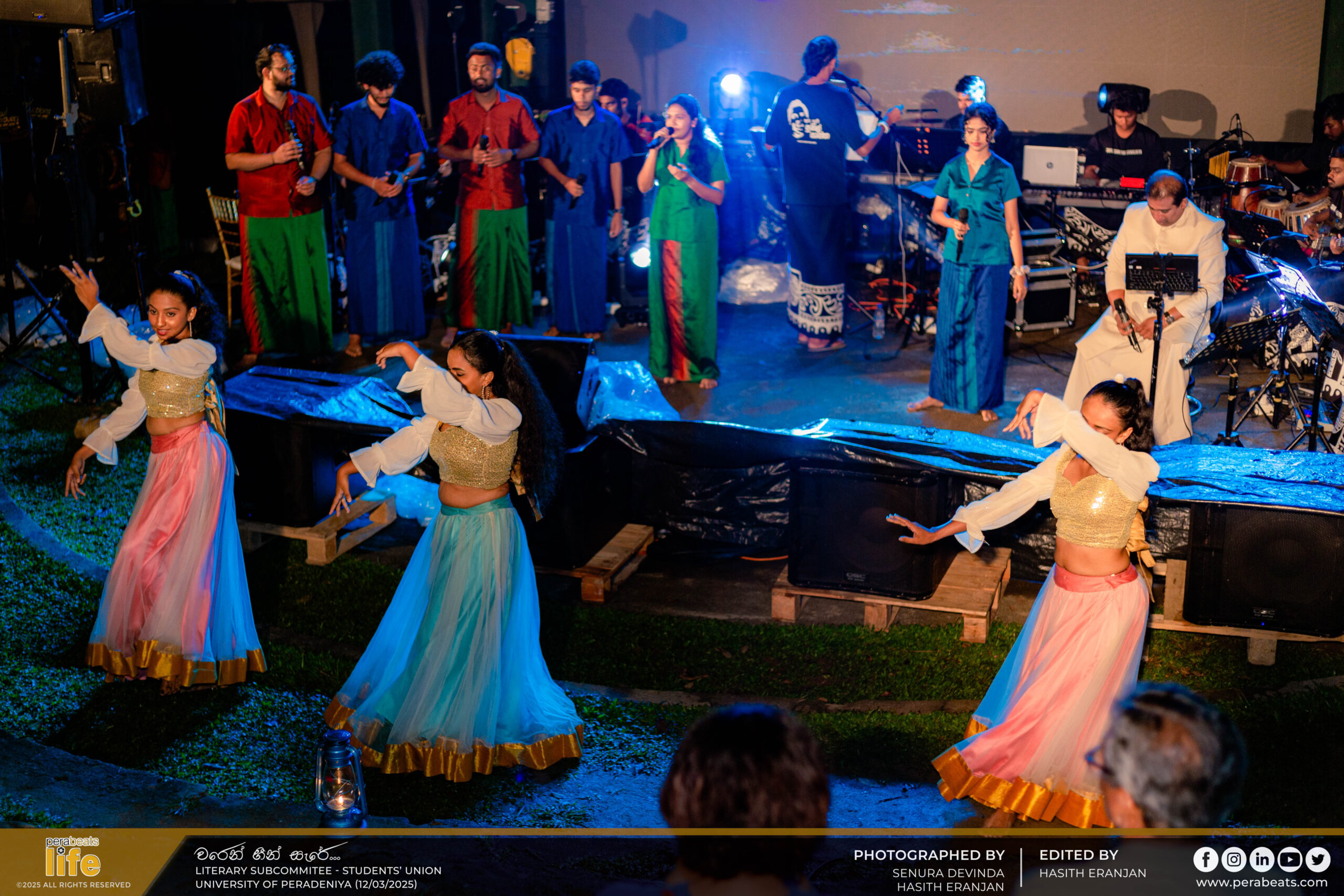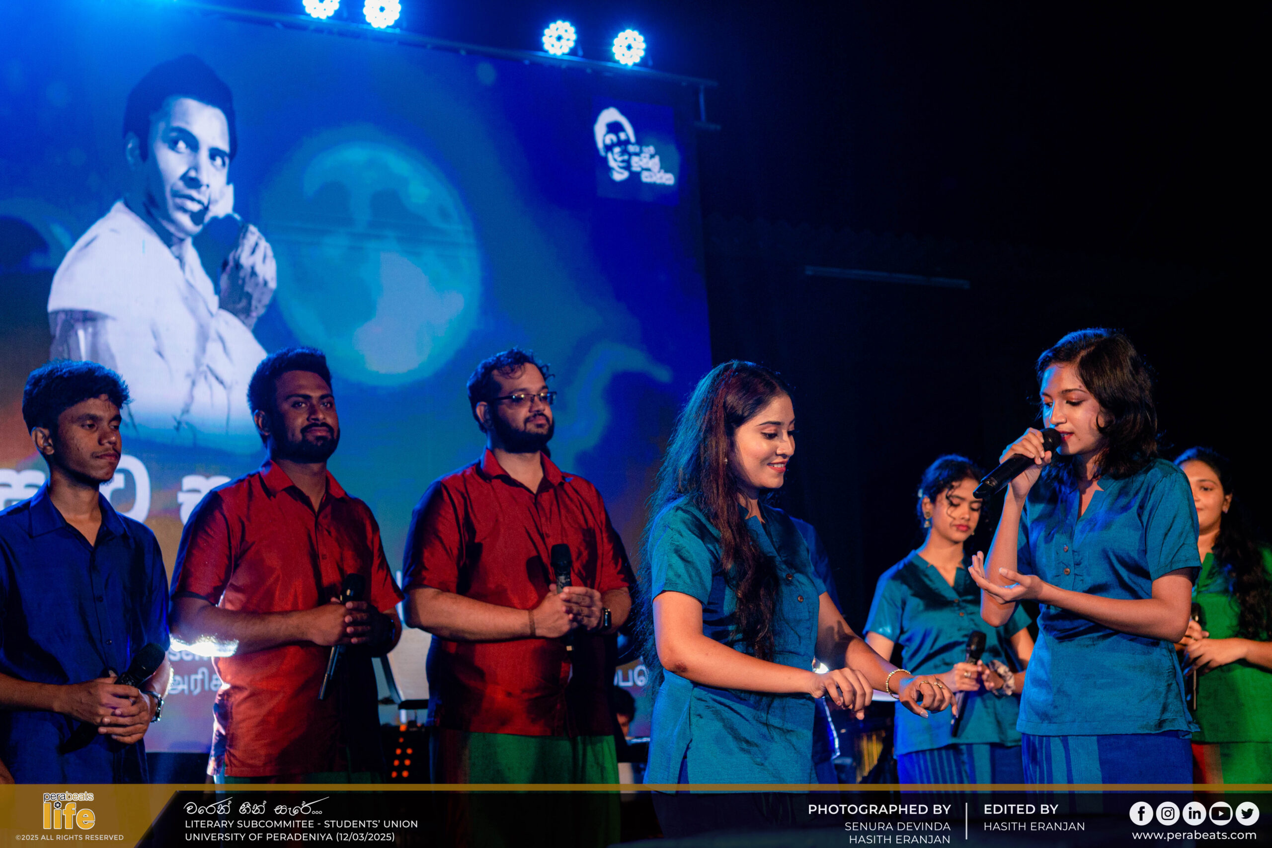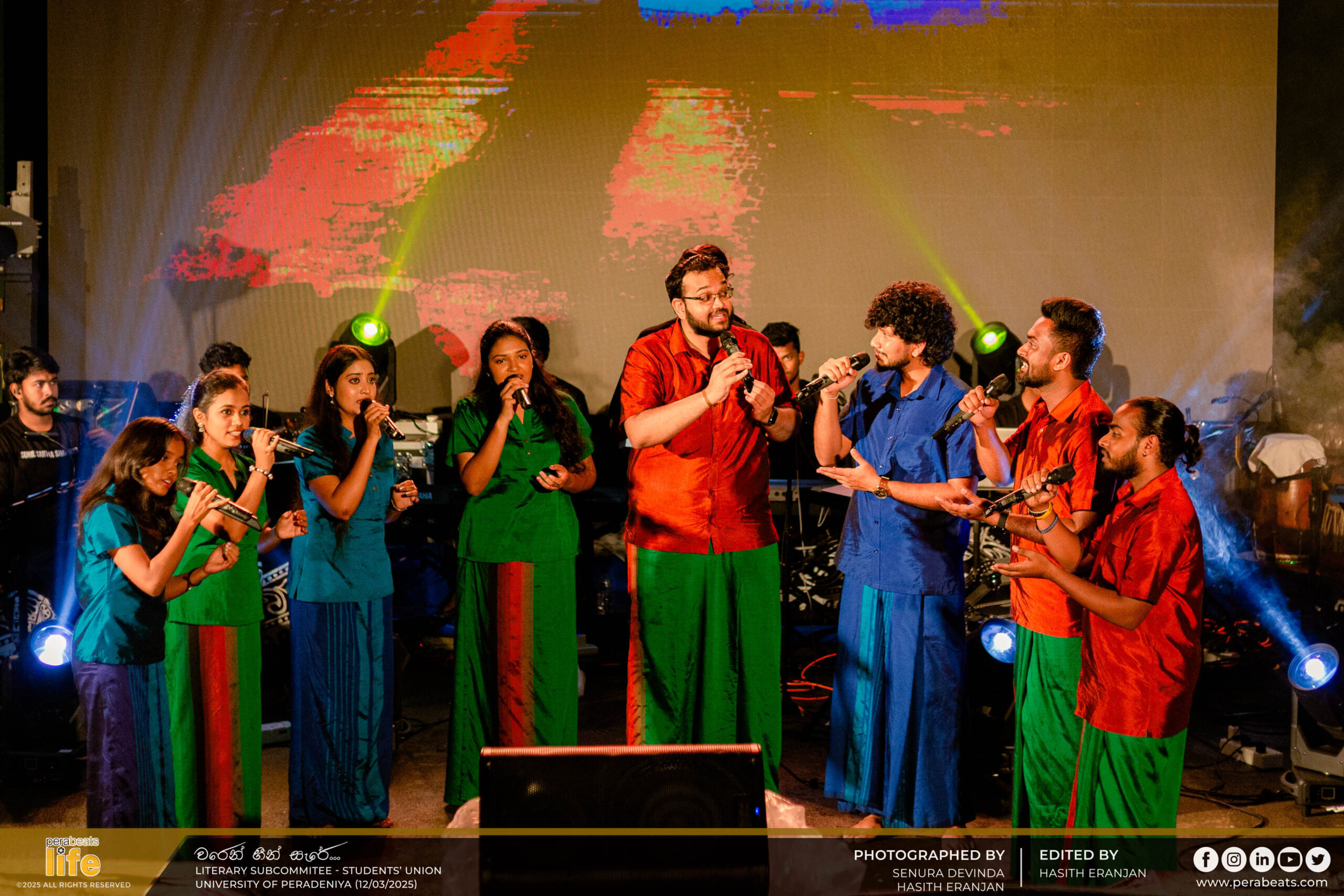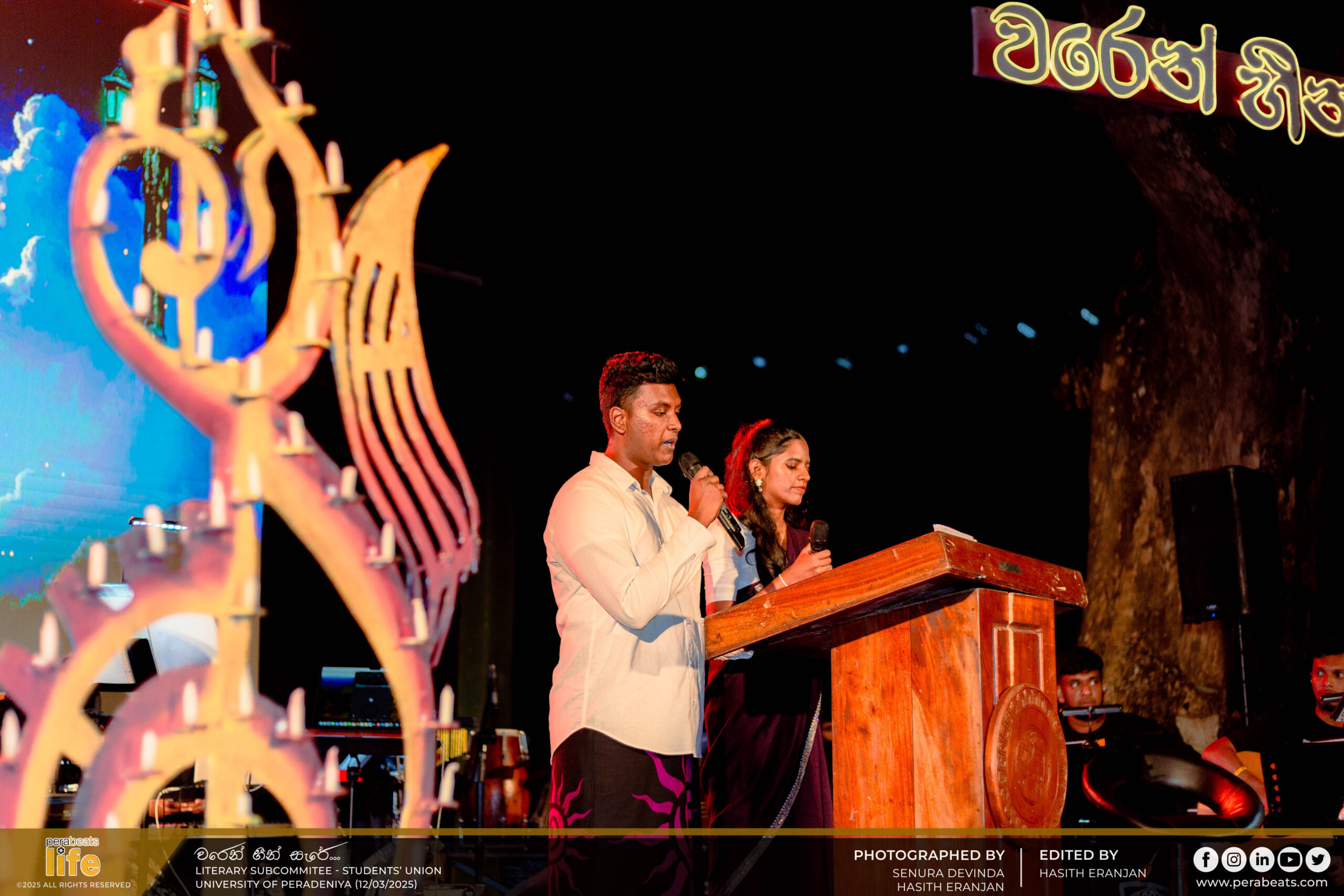 පේරාදෙණිය විශ්වවිදයාලයීය මහා ශිෂ්ය සංගමයේ සාහිත්ය අනුකමිටුව මඟින් සංවිධානය කරනු ලැබූ, සුනිල් සාන්ත සමාජය විසින් ඉදිරිපත් කරනු ලැබූ, වරෙන් හීන් සැරේ ගී මියැසිය, අතුරු සිදුරු නොවූ ප්රේක්ෂකාගාරයක් ඉදිරියේ මහාචාර්ය එදිරිවීර සරච්චන්ද්ර එළිමහන් රංග පීඨයේදී මෙලෙස දිග හැරුණු වගයි.