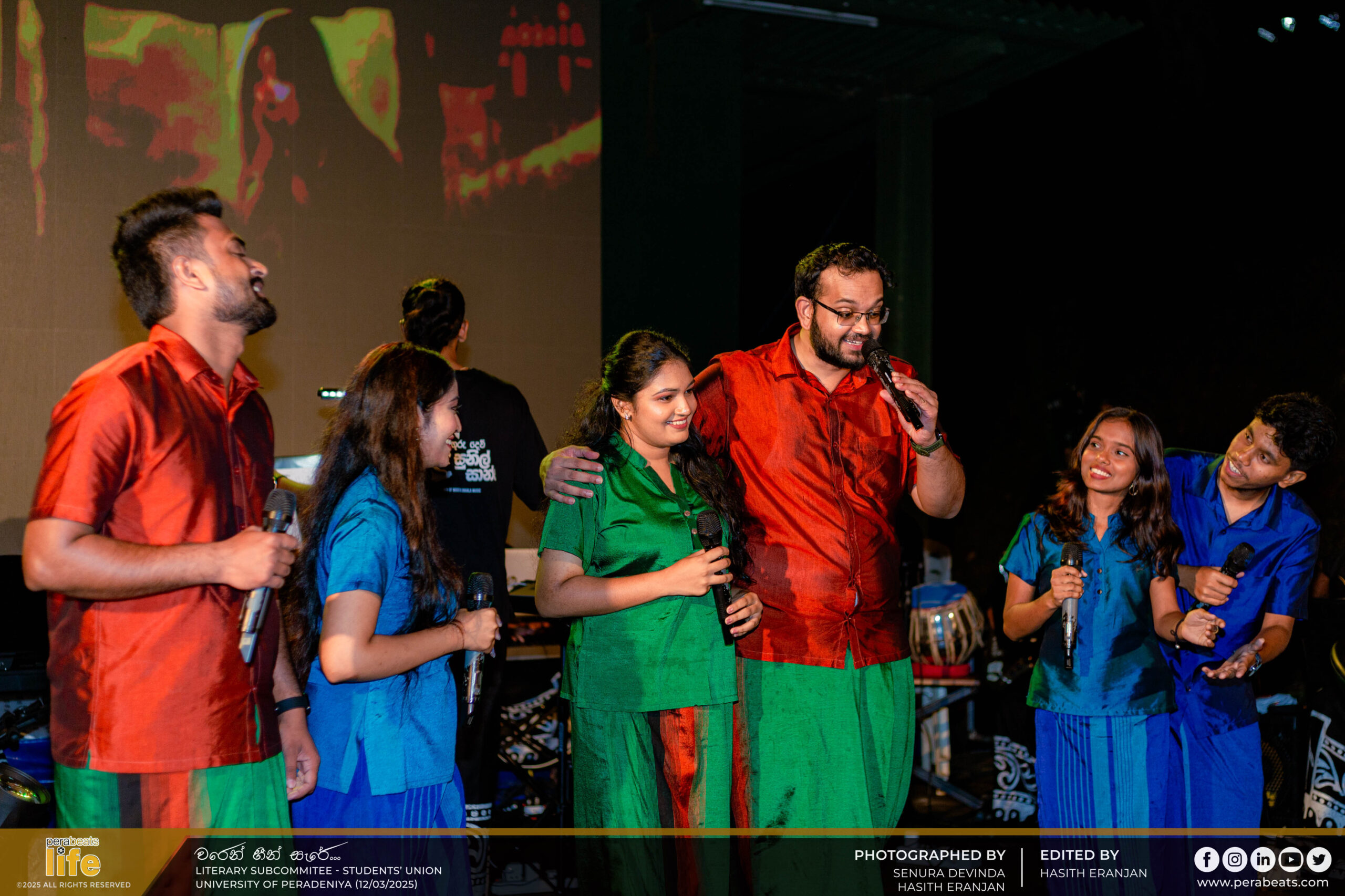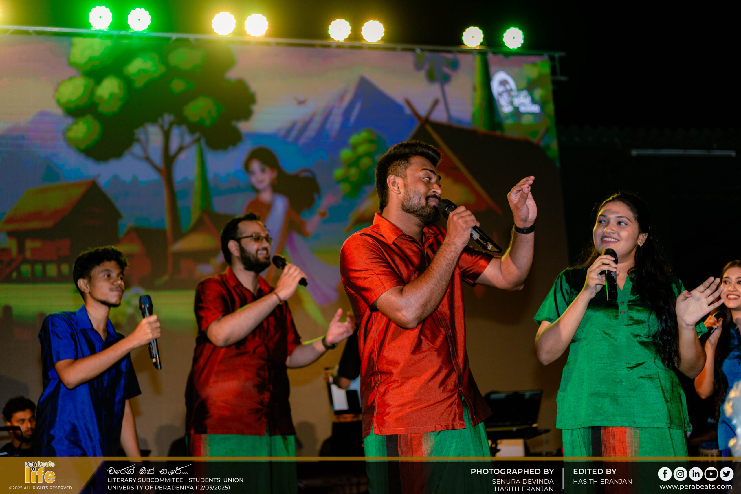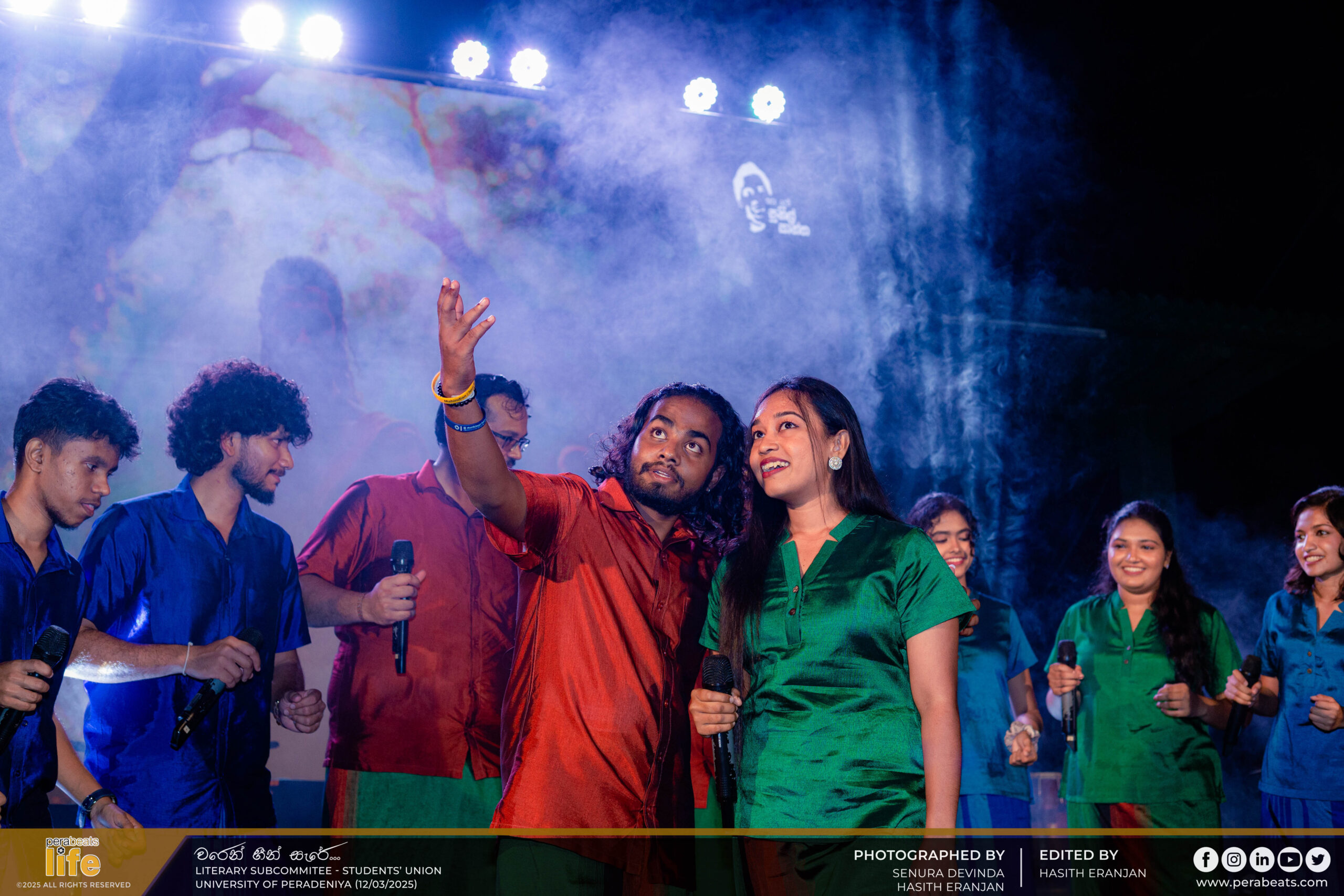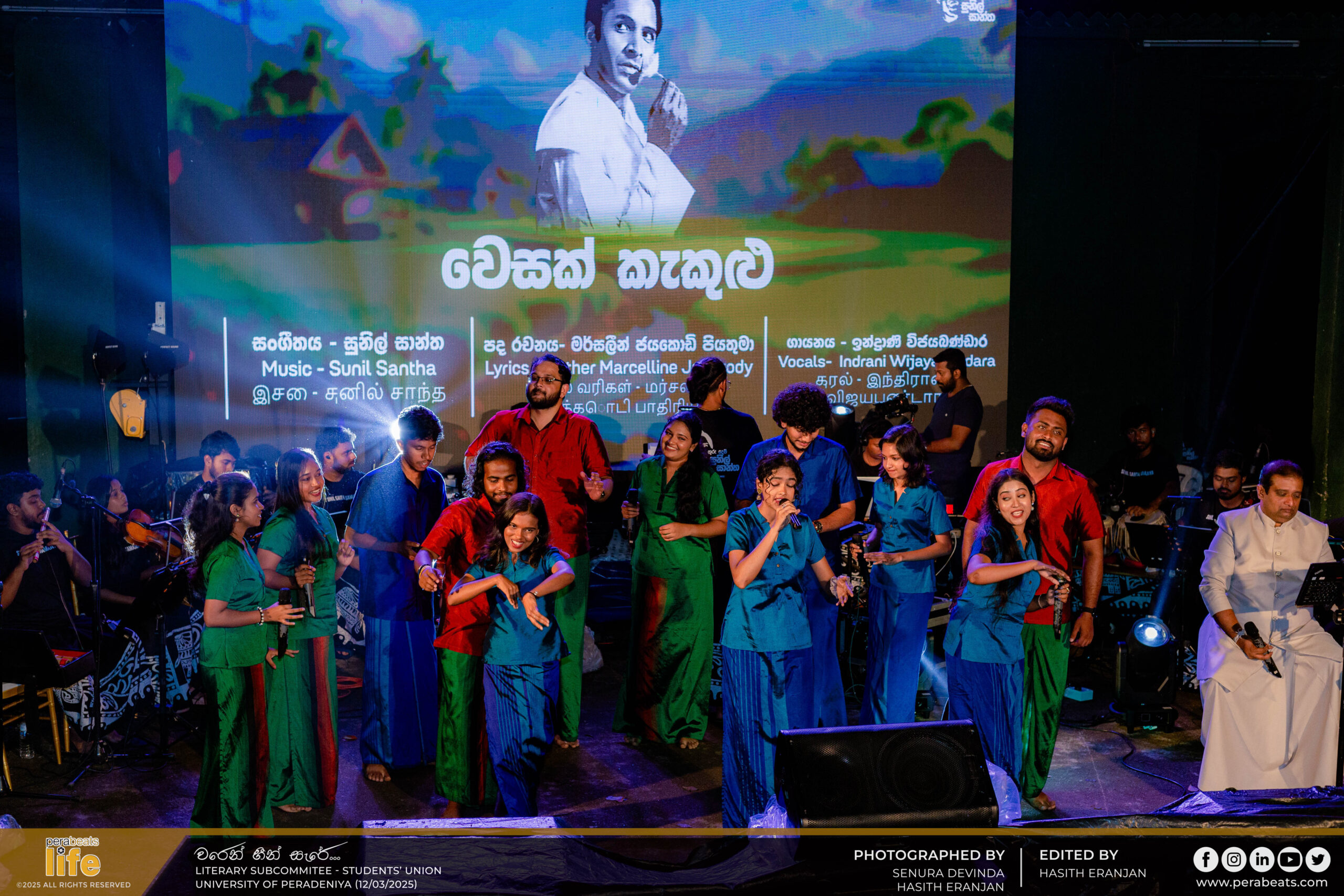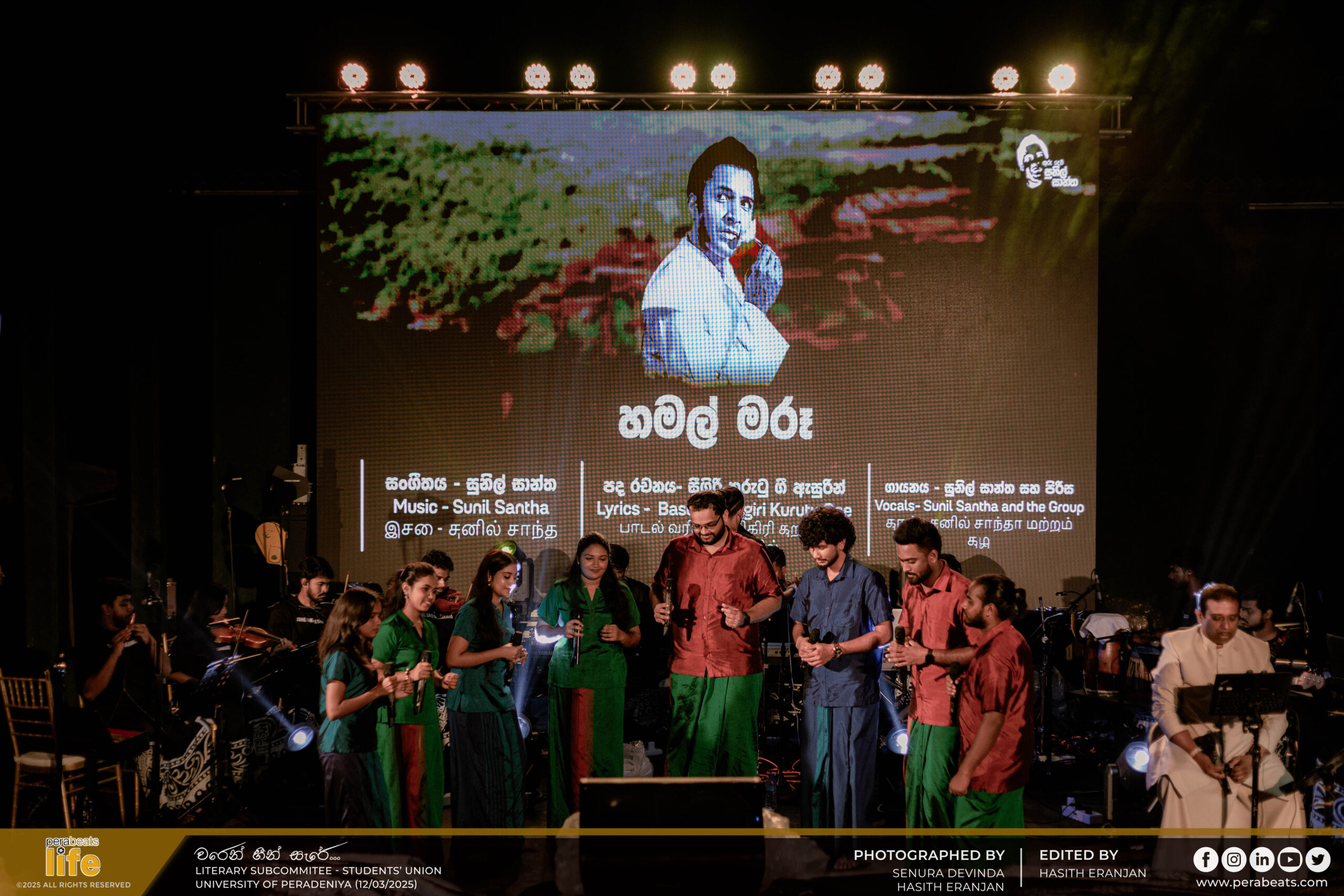 පේරාදෙණිය විශ්වවිදයාලයීය මහා ශිෂ්ය සංගමයේ සාහිත්ය අනුකමිටුව මඟින් සංවිධානය කරනු ලැබූ, සුනිල් සාන්ත සමාජය විසින් ඉදිරිපත් කරනු ලැබූ, වරෙන් හීන් සැරේ ගී මියැසිය, අතුරු සිදුරු නොවූ ප්රේක්ෂකාගාරයක් ඉදිරියේ මහාචාර්ය එදිරිවීර සරච්චන්ද්ර එළිමහන් රංග පීඨයේදී මෙලෙස දිග හැරුණු වගයි.